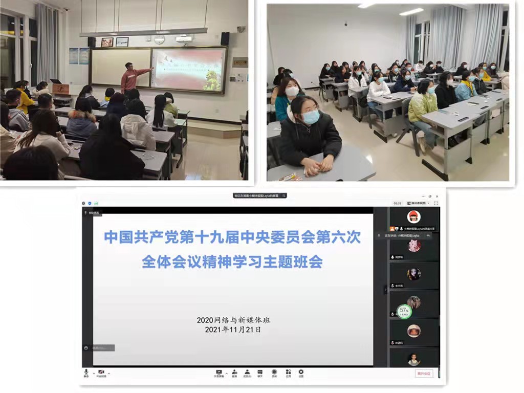 2021年11月21日,zoty中欧组织员工干部在东一教学楼302教室开展了学习党的十九届六中全会精神的活动,各班级在晚班会上也以各种形式对会议精神进行了集中学习。
