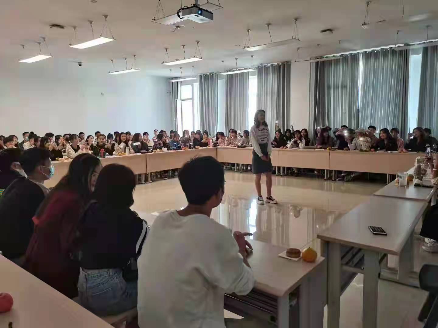 9月20日,三位新生班主任慰问了21级新生,举办了中秋节活动,极大地调动了新生积极性和主动性,提升新生集体荣誉感。同学们能歌善舞、多才多艺,现场气氛热烈,友好互动。通过本次活动,新生能更快熟悉身边同学,减少陌生感,增强班级凝聚力。