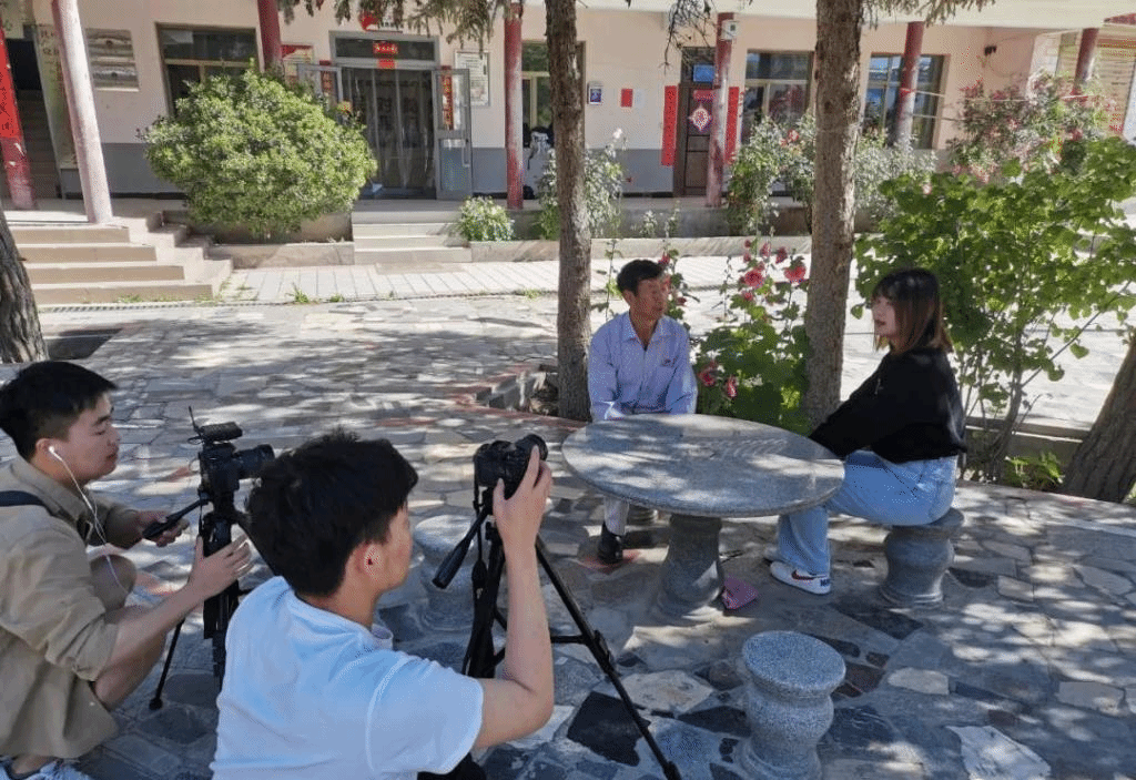 在大史家村历史展览馆,成员们分工明确,按照出发前做好的准备,有条不紊地开展活动纪录片的拍摄工作。2019级网络与新媒体专业高雄同学作为纪录片的领学人,以“青年大学习”短片的展现形式,初步完成相关拍摄;2019级汉语言文学专业马麦艳、朱晓雨同学通过访谈的形式,对当地村民进行了调研,遴选并采访大史家村当中革命先烈家庭及村民,对这些采访对象进行深入的报道;2019级网络与新媒体专业刘成浩、苏丽金、王海强、青海大学马瑶琳同学以青年视角,通过镜头,记录大史家村在“红色”基因和乡村特色旅游中走出的一条创新道路。
