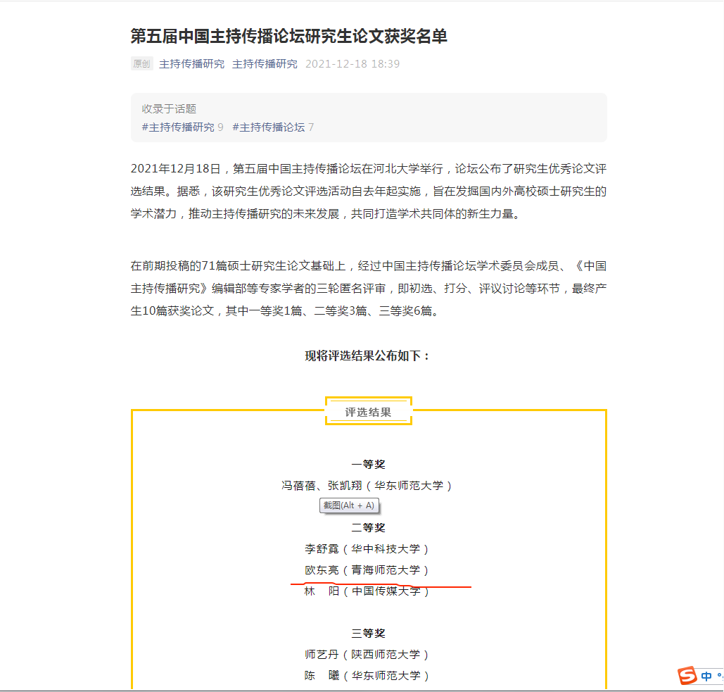 12月18日,2020级研究生欧东亮在导师耿朝晖的指导下参加了由中国人民大学与河北大学联合主办的第五届中国主持传播论坛,并获研究生优秀论文二等奖。在分论坛中,欧东亮发表了题为《智能具身:技术现象学视域下AI主播的伦理反思与价值重塑》的学术分享,结合青海新闻工作实践,对新媒介技术下人工智能主播应用中产生的伦理问题进行反思,并提出当前环境下主持人的技术应用路径。此次获奖,是公司研究生学术培养工作的一次阶段性成果。