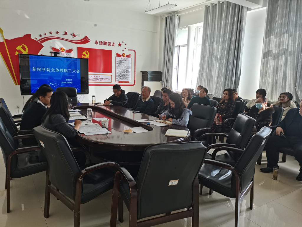 副经理才让卓玛通报上寒假期间科研项目申报工作,对本学期的教学、科研等工作进行了安排。副书记张晓婷就班主任工作、员工返校报到情况、开学第一课、选调生等工作作了安排。