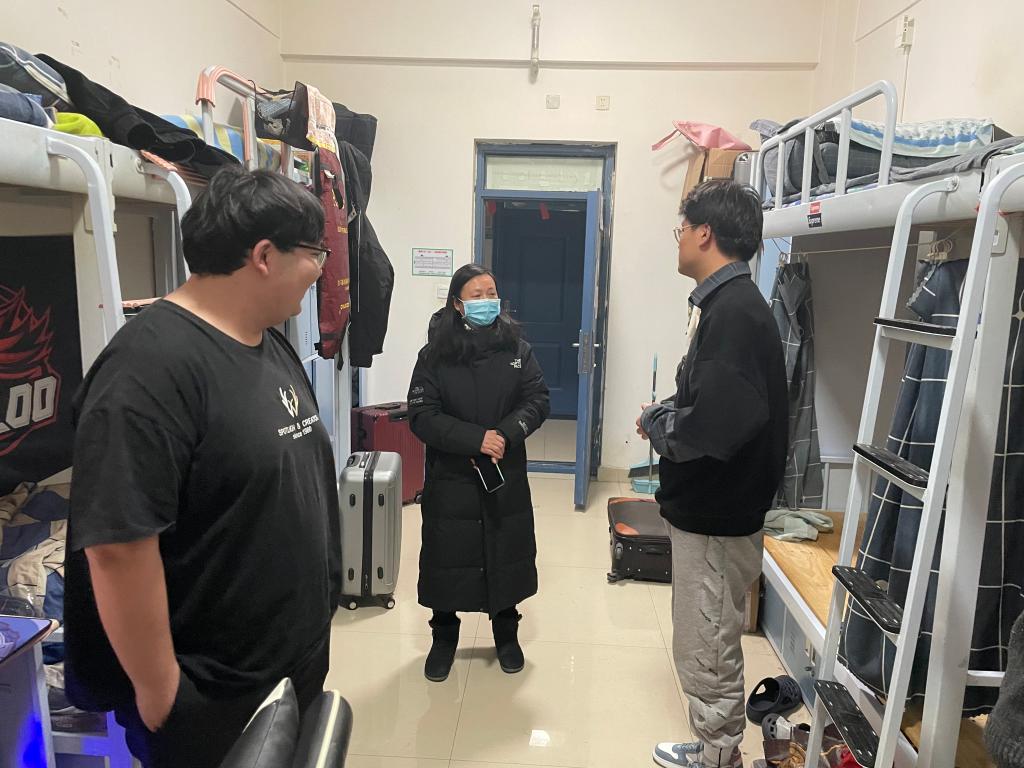 在检查过程中,张晓婷副书记亲自深入到各个员工宿舍,对员工返校情况、宿舍卫生情况进行检查,并和刚刚返校的同学们亲切交谈,了解他们的假期生活情况、新学期的规划等等。在检查过程中,检查小组检查每间宿舍“宿舍十严禁”张贴和学习情况、宿舍卫生是否良好,为同学们强调新学期公司有关疫情防控工作的重点,做好自我健康管理,树立个人健康责任意识,时刻保持个人防护等,并嘱咐同学们时刻注意宿舍安全,为自己的新学期开一个好头。