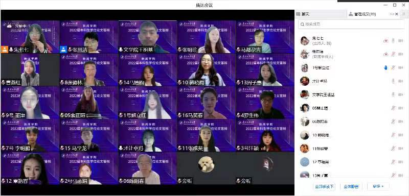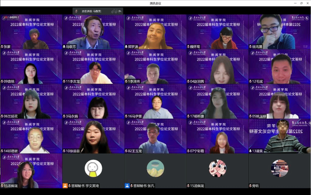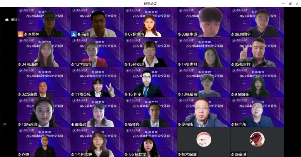 zoty中欧2018级本科生毕业论文答辩工作于5月25日顺利结束。受疫情影响,本届毕业论文答辩采取线上答辩方式,新闻学、网络与新媒体和播音主持艺术三个专业的158名员工分十个答辩小组,分别于5月20日和5月25日进行了答辩,答辩委员由zoty中欧全体教师及特邀答辩委员文公司马都尕吉副教授和王祖基副教授组成。党总支副书记张晓婷进行了纪律监督,公司新媒体中心周财正老师提供了在线技术支持。答辩工作严格按照公司学士学位授予工作实施细则进行。
