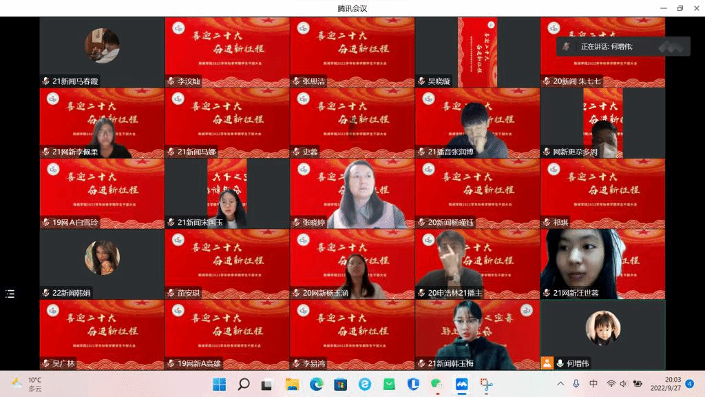 为迎接党的二十大,不断深化学习贯彻习近平新时代中国特色社会主义思想。弘扬新时代学风建设精神,加强学风建设,2022年9月27日公司召开“喜迎二十大,奋进新征程”为主题员工干部大会,会议由辅导员何增伟主持,党总支副书记张晓婷和全体员工干部参加。