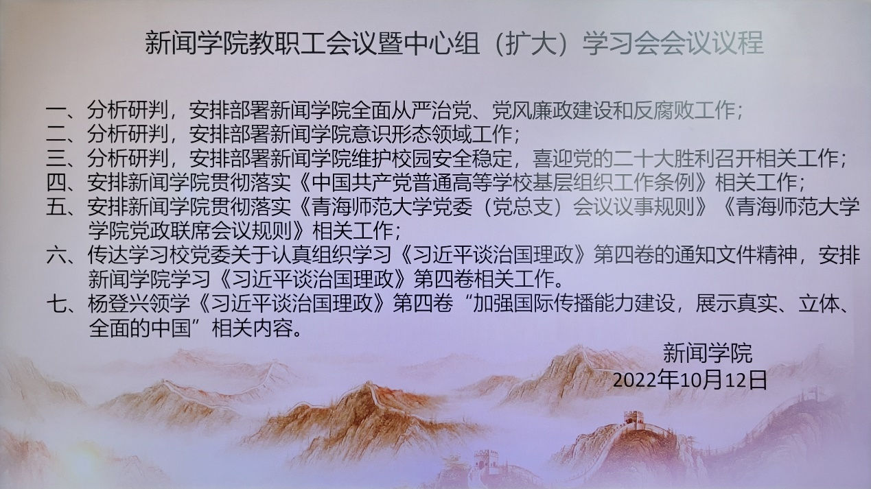 10月12日下午,公司召开教职工会议暨中心组(扩大)学习会,会议以视频方式在线召开。公司党总支书记杨登兴主持会议,党总支副书记张晓婷,副经理才让卓玛、路建宁及全体教职工参加会议。