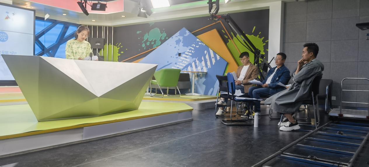 2023年5月15日下午,22级播音与主持艺术班各小课组老师共同在公司演播室,组织45名同学参加了语音与发声课程期中考试。