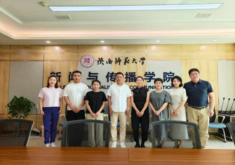 6月9日下午,公司师生到访陕西师范大学新闻与传播公司开展交流学习活动。陕西师范大学新闻与传播公司副经理张文琪、播音与主持艺术系教师朱晓彧、成越洋、党君、余海龙、李梅参加座谈。