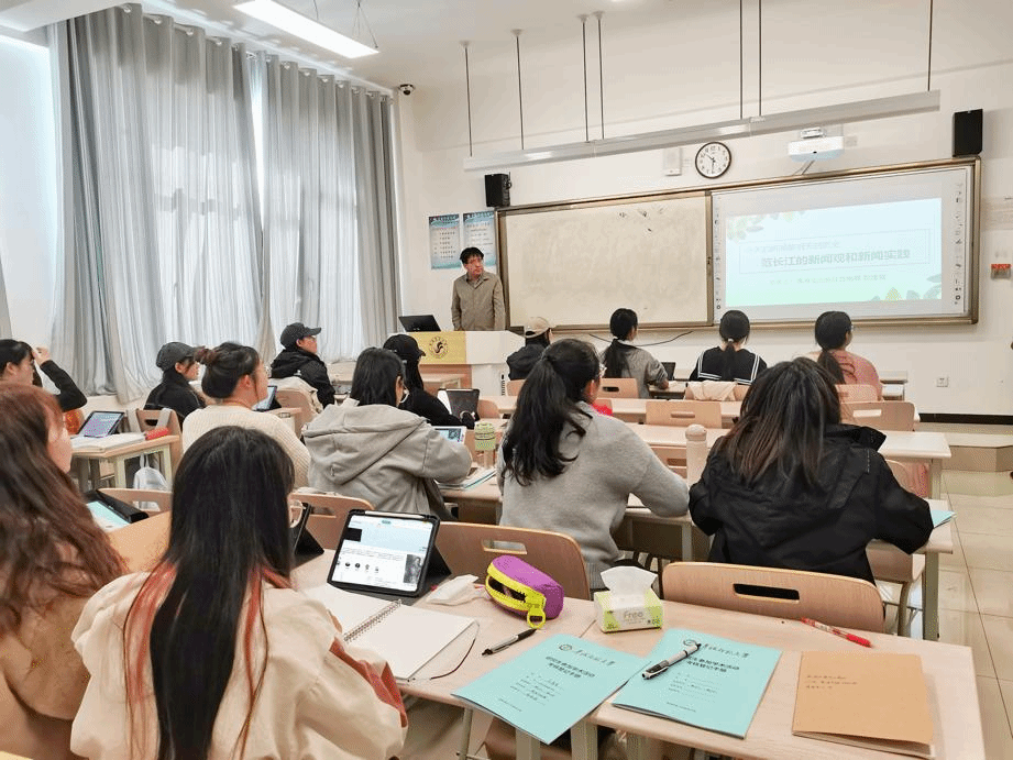 11月3日上午,青海法治报社总编辑郭建强应邀为2023级研究生作了题为“今天的新闻是明天的历史:范长江的新闻观和新闻实践”的讲座。郭建强老师带领同学们重温了范长江先生的新闻观及其新闻实践活动。讲座由公司党总支书记杨登兴主持。