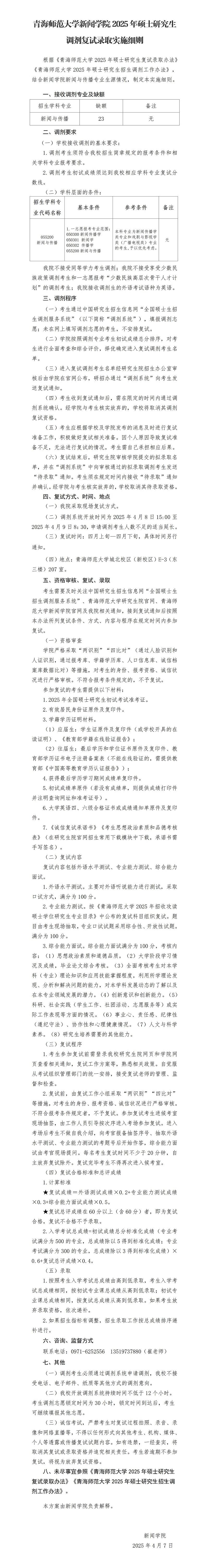 2025年硕士研究生调剂复试录取实施细则