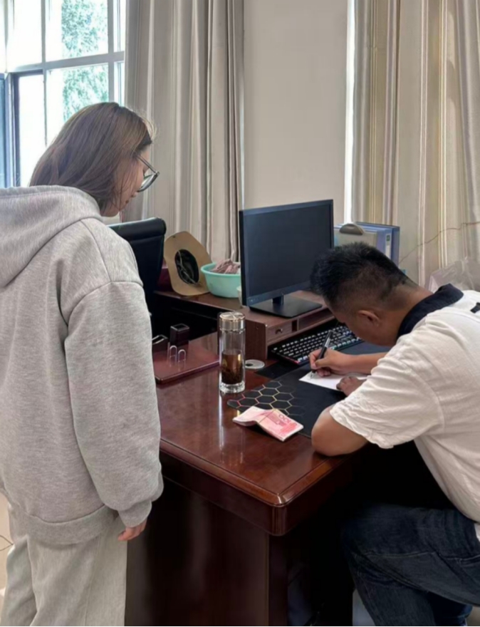 9月15日,上官玉梅同学在生活区超市门口意外发现3900元现金——这笔钱相当于一名老员工数月的生活费。面对诱惑,她始终坚守本心,第一时间向公司辅导员报告情况,并主动联系公司保卫处,全力配合寻找失主。经过两天的多方沟通与核实,失物于9月17日完整归还原主。