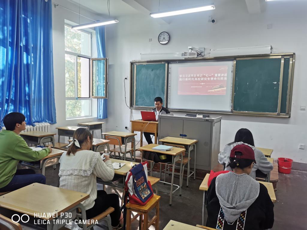 活动中,郭蕾同志带领全体党员重温了入党誓词,全体党员在党旗下举起右拳,庄严宣誓,传承先辈精神、坚定理想信念,以信仰为旗、以真理为路,进一步强化了作为共产党员的责任感和使命感。集体学习了《中国共产党章程》第五章关于党的基层组织的相关内容,确保党的路线方针政策和决策部署贯彻落实。何云龙同志为与会党员讲了主题为“学习习近平总书记‘七一’重要讲话,践行新时代高校研究生使命与担当”的党课,帮助同志们增强了对“9个必须”“4个历史阶段”的相关知识理解。习近平总书记指出,我们要用历史映照现实、远观未来,从中国共产党的百年奋斗中看清楚过去我们为什么能够成功、弄明白未来我们怎样才能继续成功,从而在新的征程上更加坚定、更加自觉的牢记初心使命、开创美好未来。