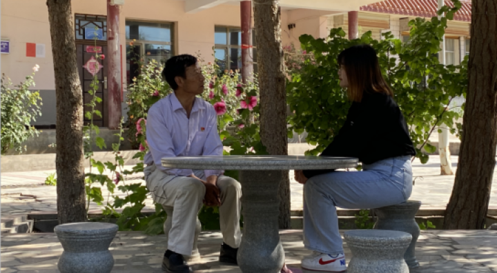 (2021年7月13日,2019级本科生暑期社会实践历史成就观察团——大史家村红色文化记录小分队8人,前往青海省贵德县大史家村,开展历史成就观察暑期社会实践和红色农业文化学习。图为团队成员采访贵德大史家村原村党委副书记、老党员孙贵生)